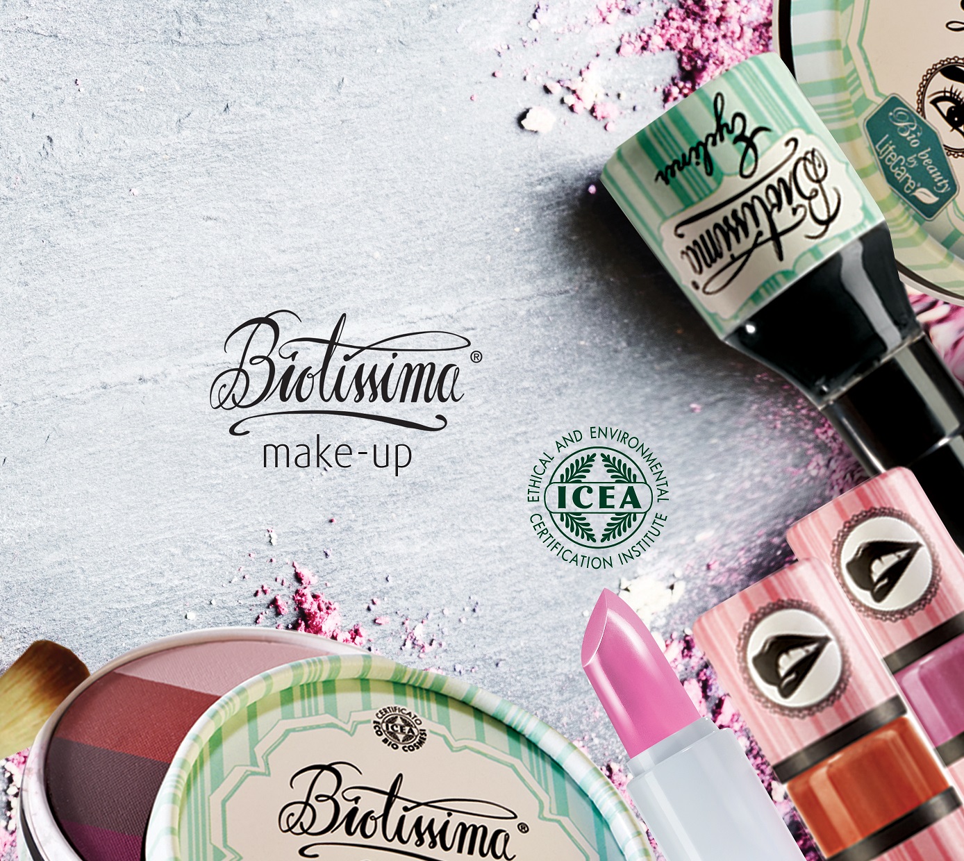 Biotissima make-up conține o colecție completă de produse pentru machiaj, care cuprinde fond de ten, corector pentru micile imperfecțiuni, pudră compactă pentru ten, farduri de obraz, farduri de pleoape, tuș pentru ochi, mascara, ruj și luciu de buze, într-o varietate de culori.