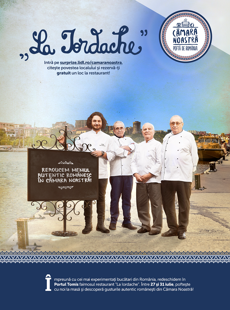 Împreună cu cei mai experimentați bucătari din România, Lidl deschide faimosul restaurant de tip pop-up „La Iordache” în Portul Tomis din Constanța. Între 27 și 31 iulie, în cadrul Săptămânii Românești, poftește cu noi la masă și descoperă gusturile autentic românești din Cămara Noastră.